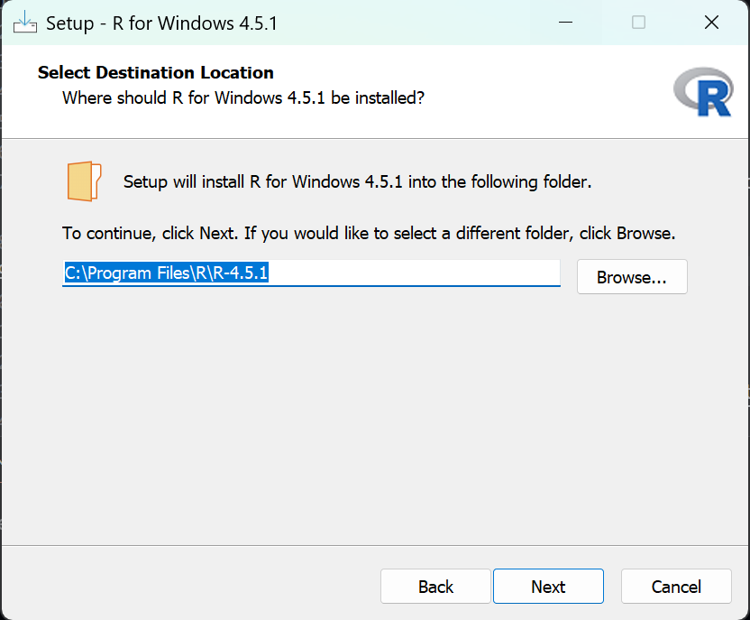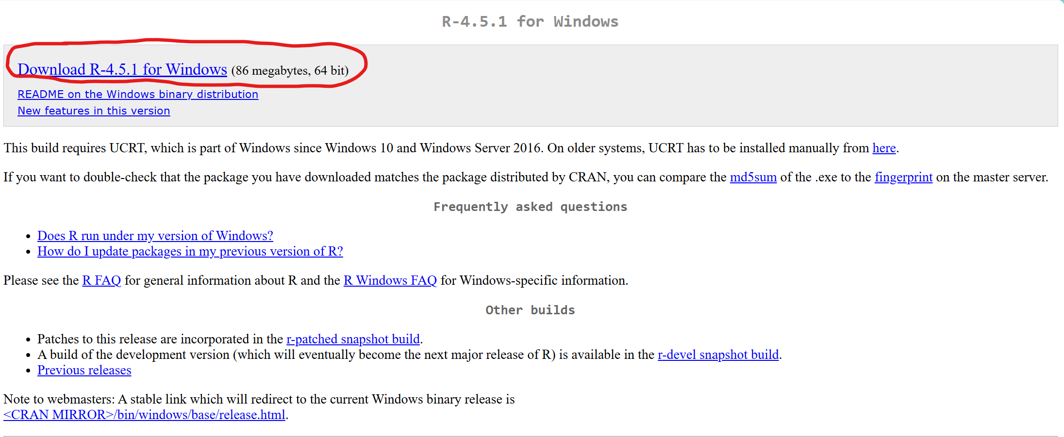 ⚠️ Please note that the R version in this reference (4.5.1) might not be as recent as you will see, but the installation process will be the same.
