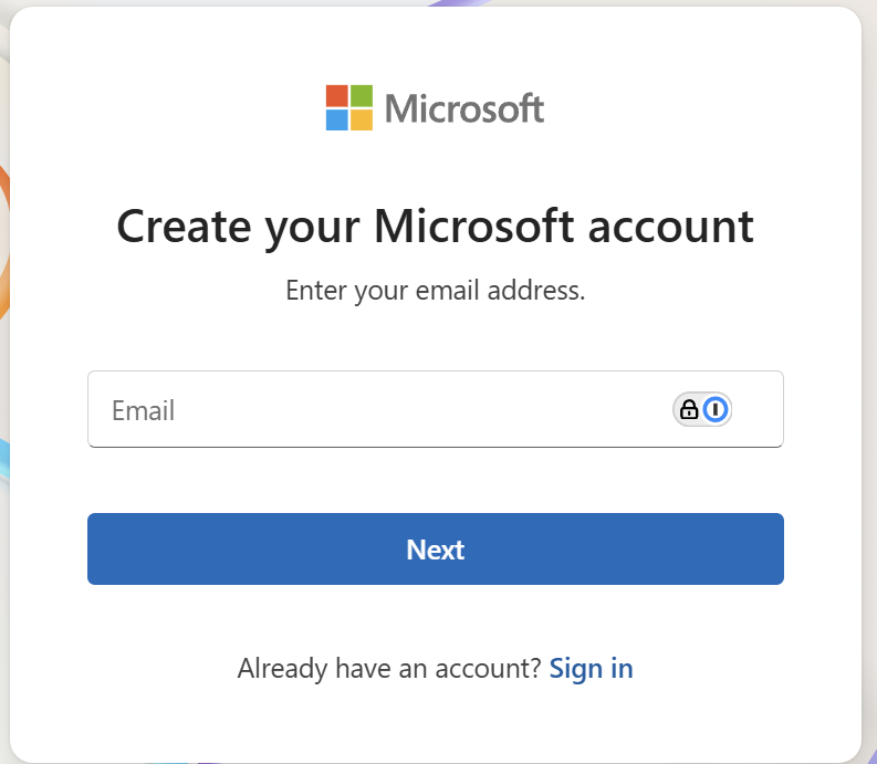 - (If you don’t have one) Register a Microsoft Account