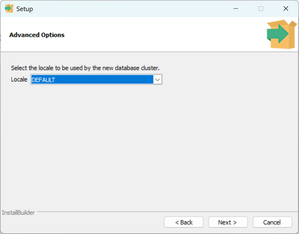 - Use the default port setting and locale setting.